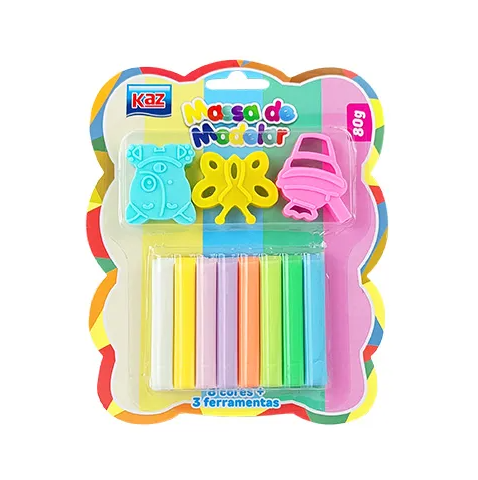 MASSA DE MODELAR 8 CORES 80G. + 3 FERRAMENTAS KZ2506
